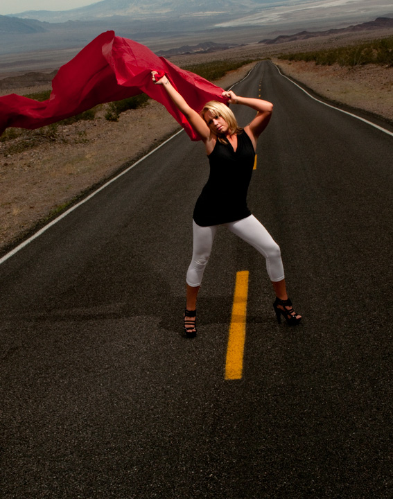 had to stop in the middle of nowhere to do this quick shoot. One VAL (voice activated light stand) and one other grip to help with the fabric.