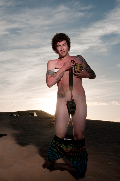 After leaving Flagstaff for Page, Ariz. on night one, we headed to Loan Rock Beach, on the Arizona/Utah boarder. Everyone proceded to get sunburned to various degrees, i escaped with minimal damage, willie not so much. There was a great sunset and since it was the beach we decided to mix things up a bit and do some implied nude portraits where everyone would cover up with some creative object of their choosing….what follows is nothing you wouldn’t see at any beach in the states or abroad, and is probably rated pg-13, however…it may not be work appropriate. Still good? scroll down to get more.