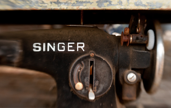 Lens baby industrial composition. Moomesa is like a museum of antiquated technology. This Singer sewing machine is no exception.