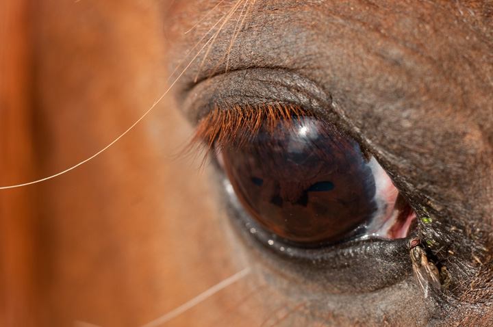 Macro of Meshka the horse’s eye, I don’t know the flies name…