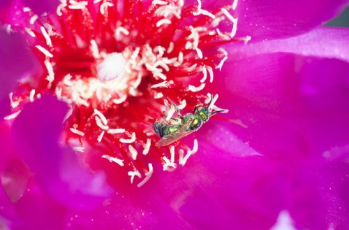Prickly Pear cactus flower con honey bee.
