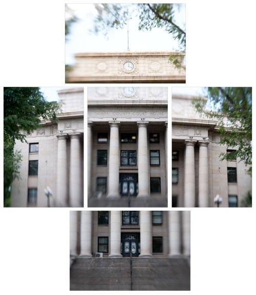 Finally, a five panel image of the front side of Prescott’s court house. This building has been photographed ad nauseam; however, I venture that no one has done it like this before…