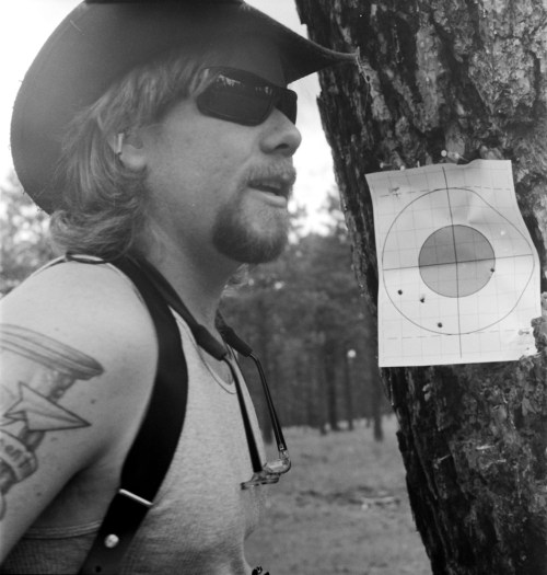Our friend Matt Beaty of Vault Photography in the woods shooting his Glock 9mm.