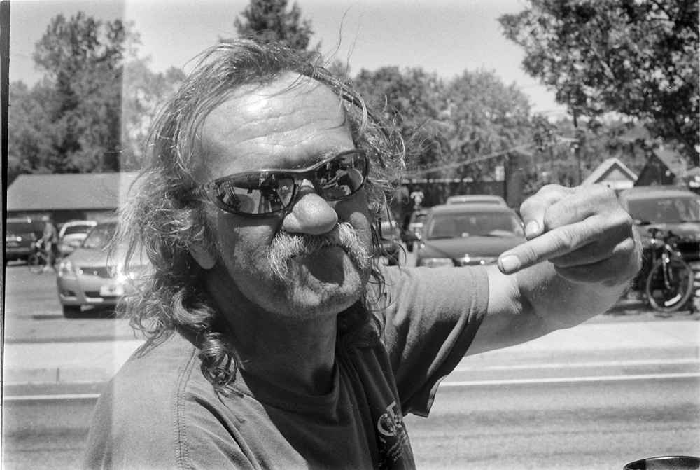 Ron, a Flagstaff outdoorsman and  favorite subject of my various street portrait series, the day he left Flagstaff to ride his bike to Wyoming.