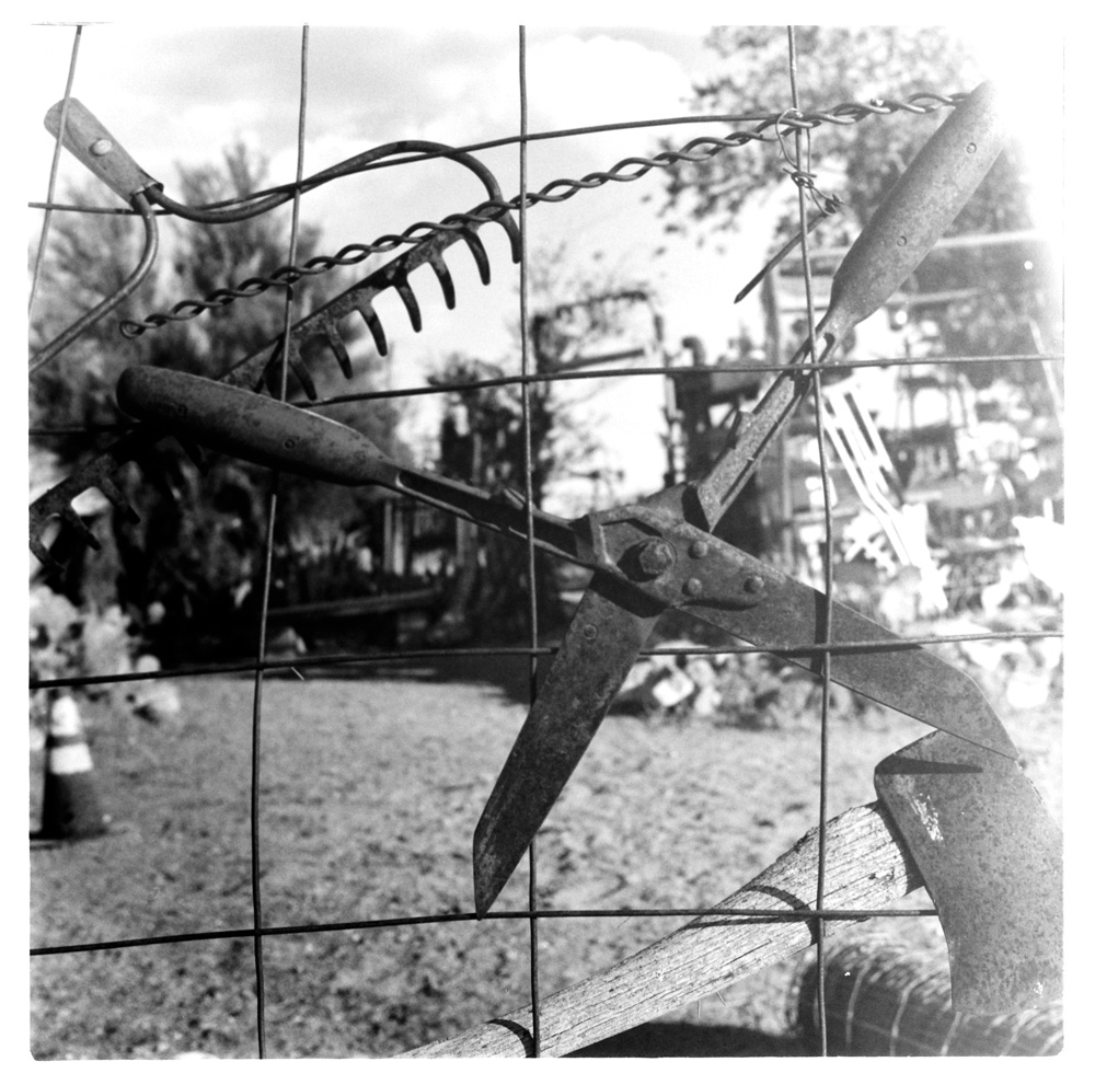 The fence around the backyard is covered in old tools…Here is a pair of sheers or clippers or whatever you want to call them…