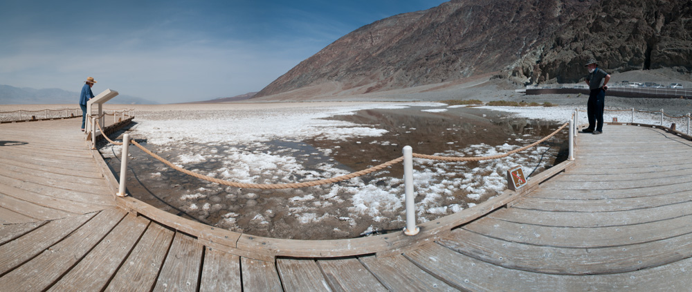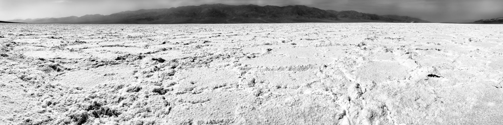 Badwater Basin Salt Flats, the Lowest point in North America. This is a 5 image stitch.