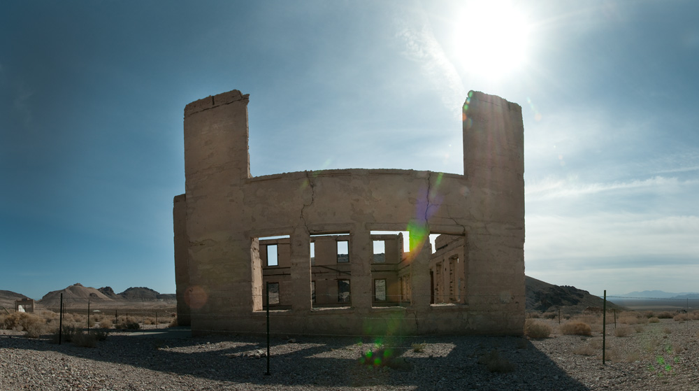 Lots and lots of panoramas in the last few weeks. Here are a few examples of the more successful ones. Above is a ruined building at Rholyte, Nev. I believe this is 4 or 5 images. Be sure to click the images to see them a little larger. (most of these are between 70-150″ long in full size, and had to be massively downscaled for web.)