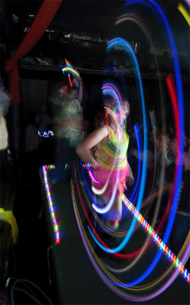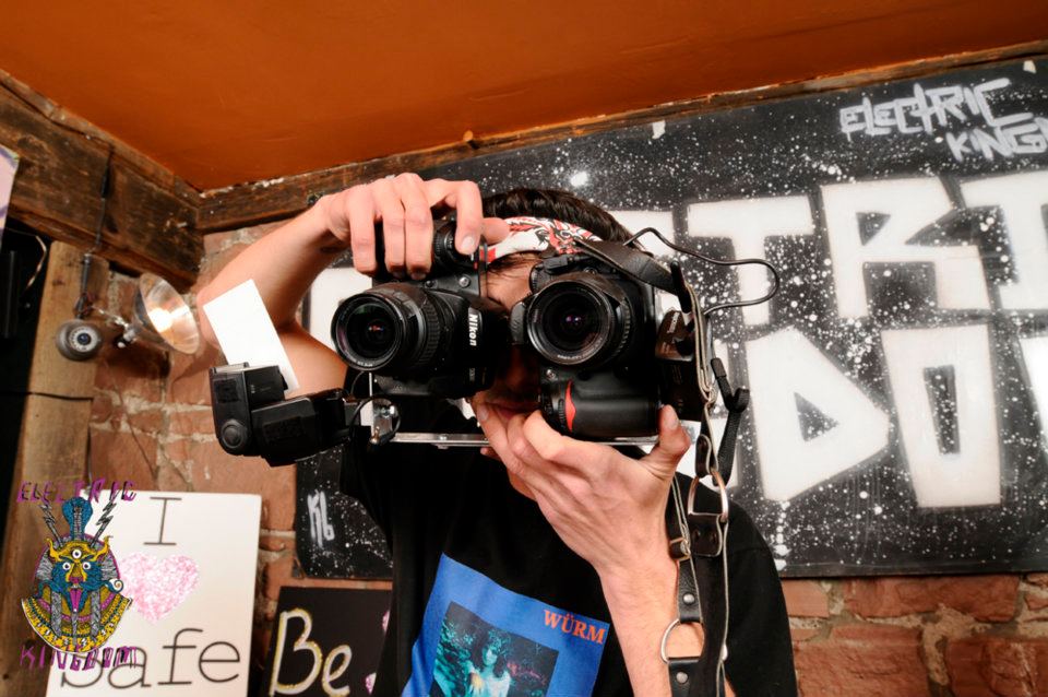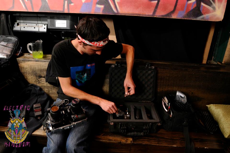 It’s time once again to share with everyone my photos from Electric Kingdom. If you are new around these parts, Electric Kingdom is a monthly electronic music and live art party here in Flagstaff, Ariz. As usual you can check out all my roaming shots by heading over to the EK Facebook page here… However, this month was a little different. Last month I did a series of portraits in glorious 3-D, which you can view here… These were shot on two tripods, with the focal length marked in the dirt and were generally static and tedious to shoot. Never one to be satisfied, I decided to try and build a bracket that would allow me to shoot two professional dslr’s at the same time with off camera flash at the night club (or really anywhere). I thought the motion and blurry lights would lend themselves to 3-D very well, and generally they did, but the rabbit hole went deeper than I had anticipated…