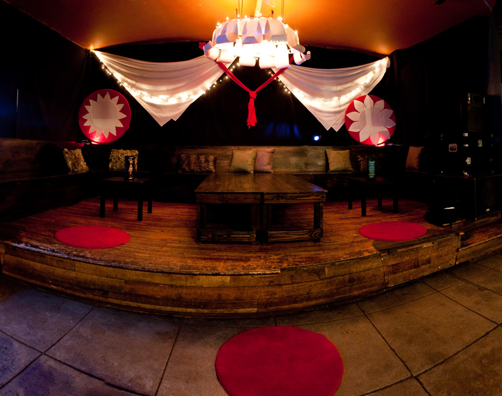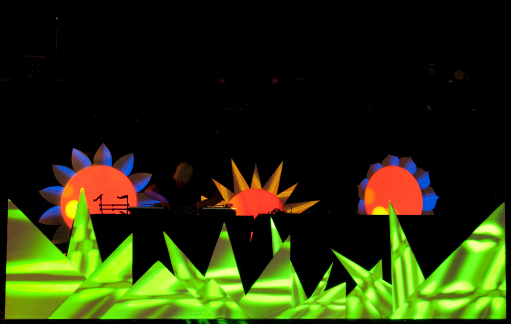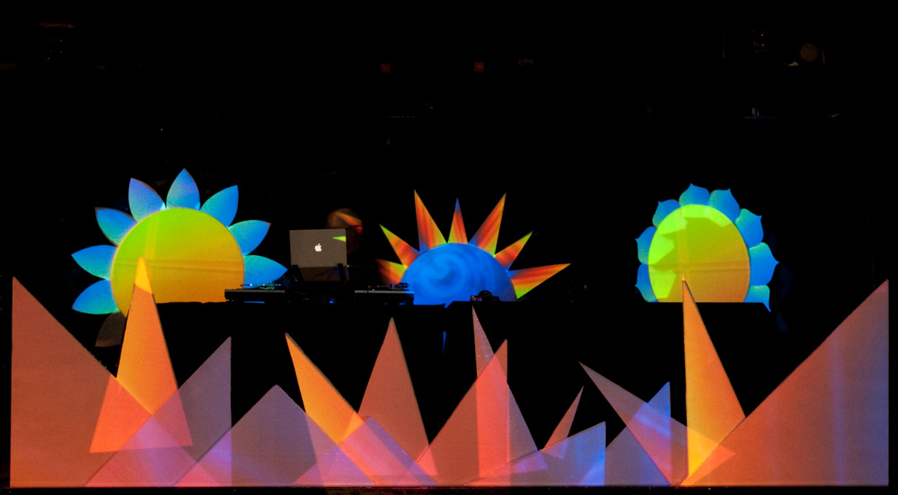 Spent all afternoon yesterday helping build the stage and lounge for Ill-Esha’s set at Culture Shock. Below are some images of the stage with the bit-mapped projections. Above is the Sunflower Lounge area, which is a seven or eight image panorama. Be sure to see them in full size and head over to my Facebook Page to join the conversation…