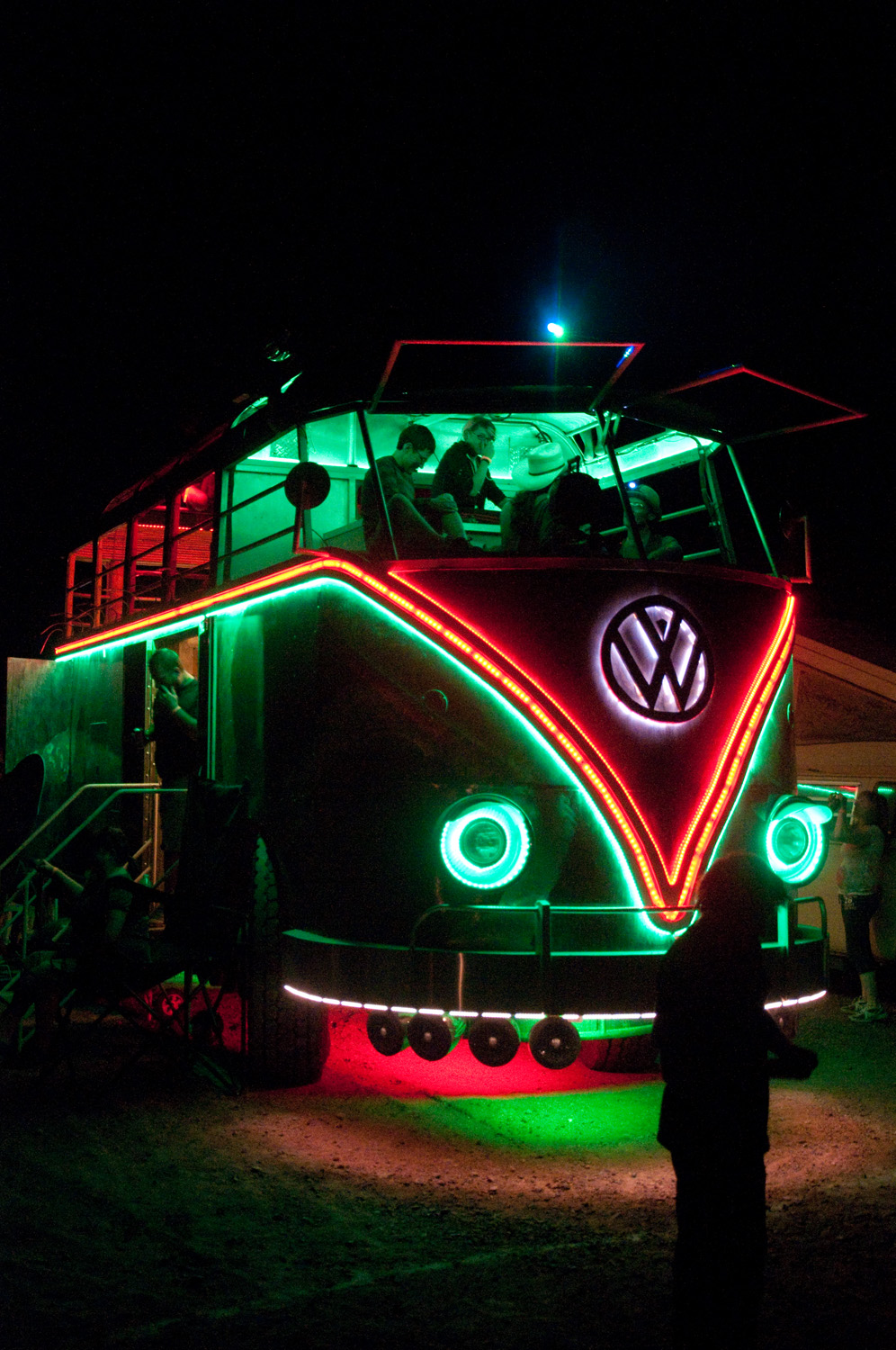 Everyone had their own way of relaxing into the evening. Then the disco bus lit up…