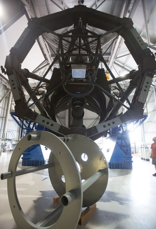 The Discovery Channel Telescope, mirror freshly cleaned, waits to be reassembled in the dome that houses it outside of Flagstaff. (Taylor Mahoney/Arizona Daily Sun)