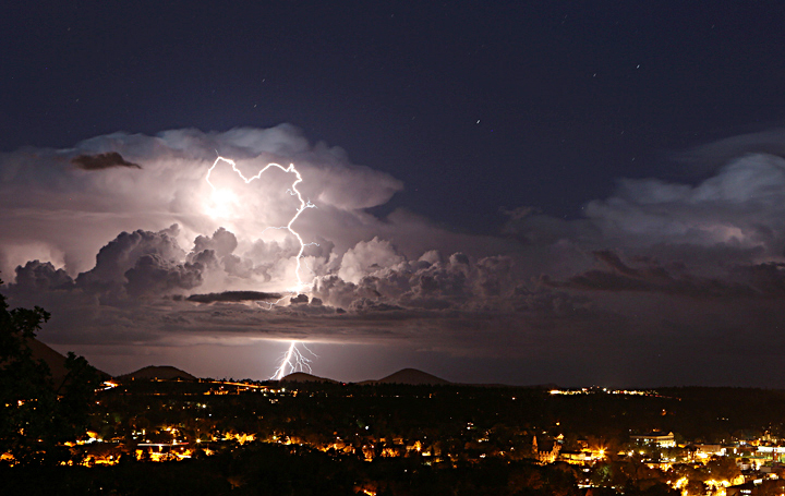 A large monsoon thunderhead that had built over Flagstaff Thursday afternoon, produced a brilliant light show later that evening, seen here from Mars Hill. (Taylor Mahoney/Arizona Daily Sun)