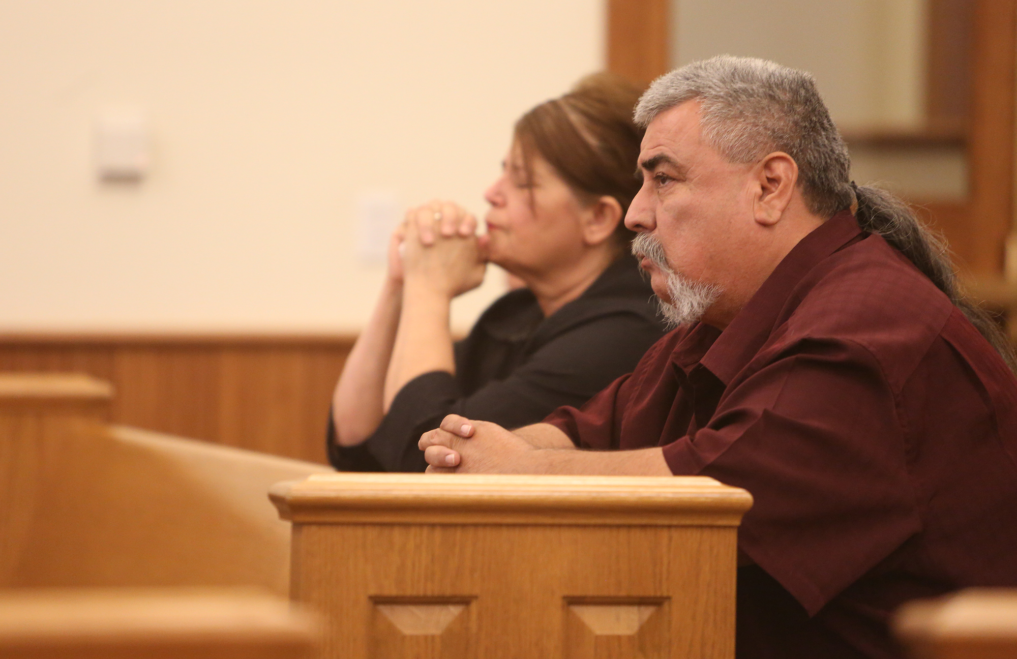 The parents of Luis Leyvas Sanchez sit in Coconino County Superior Court awaiting their son’s sentencing Friday. (Taylor Mahoney/Arizona Daily Sun)