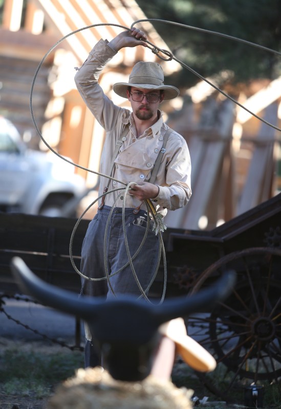Noah Creek, of Flagstaff, spins a lasso during a roping demonstration that was part of the Arizona Historical Society’s Heritage Festival 2014 held Saturday at the Pioneer Museum. (Taylor Mahoney/Arizona Daily Sun)