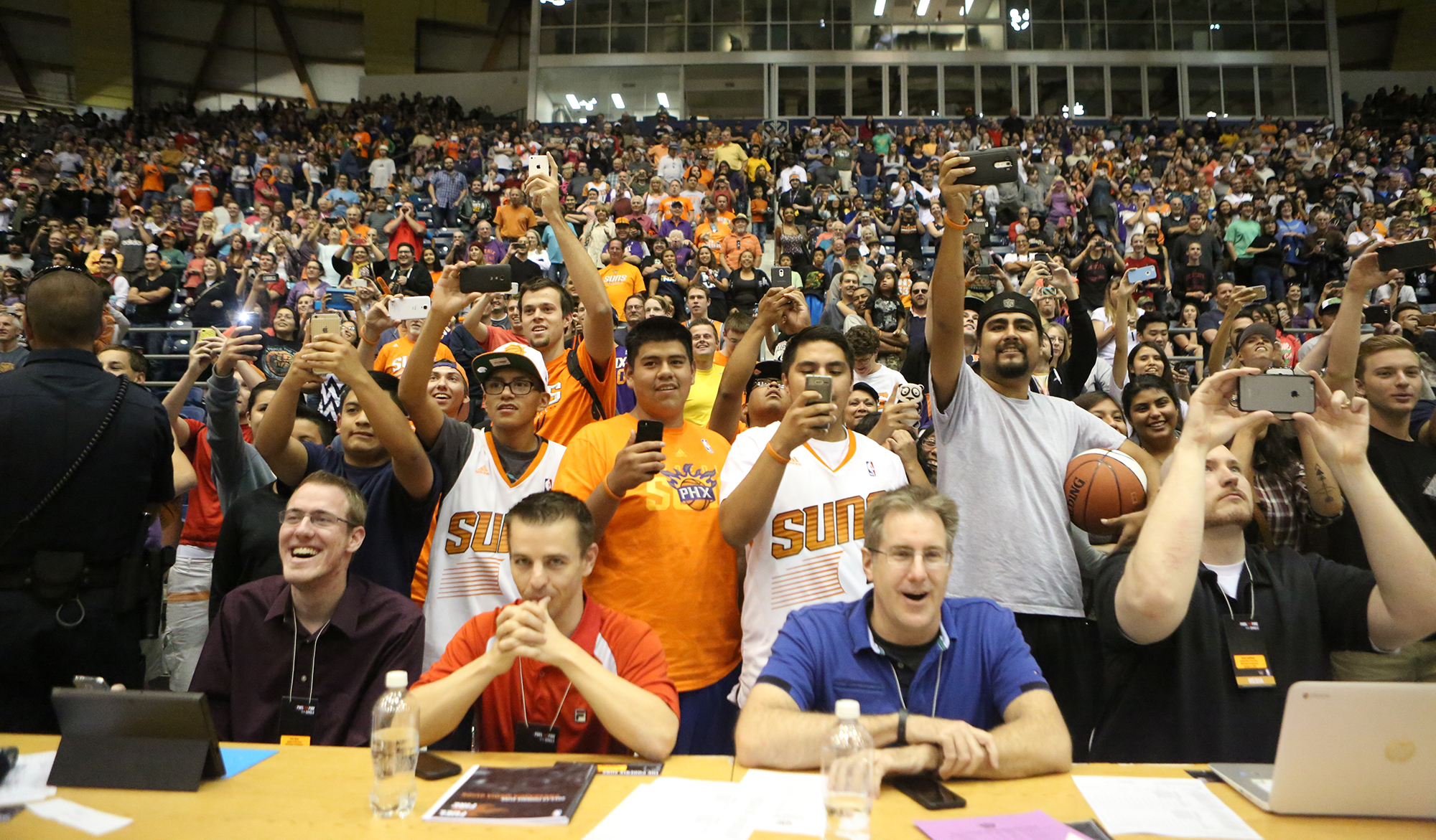 Fans record the action on smartphones and cameras during a Phoenix Suns scrimmage Saturday at the Skydome in Flagstaff. (Taylor Mahoney/Arizona Daily Sun)