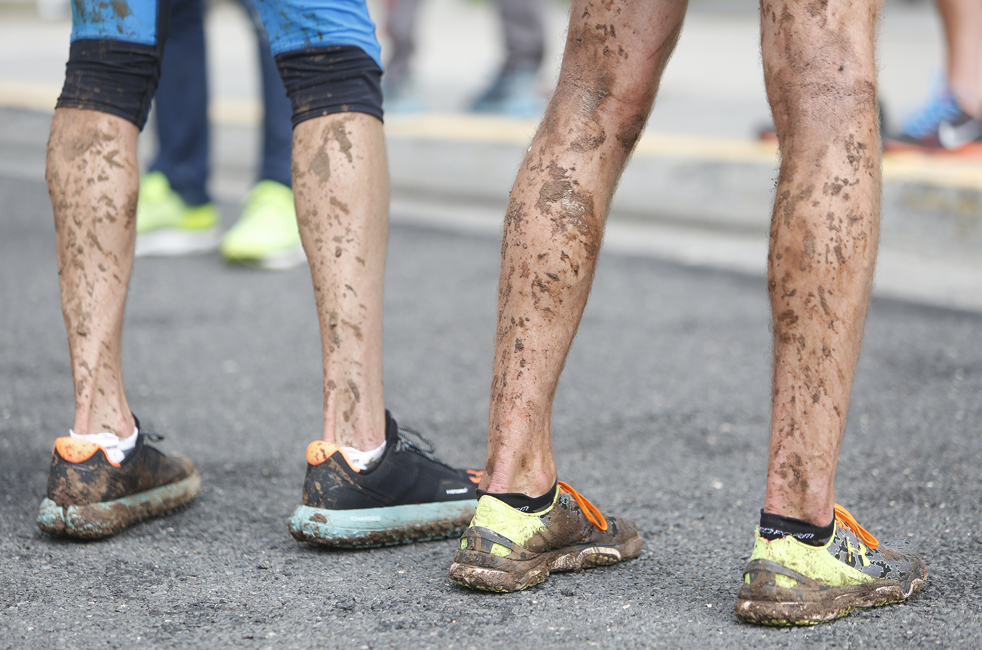Runners covered in mud after completing Dave McKay Memorial Half Marathon Saturday.