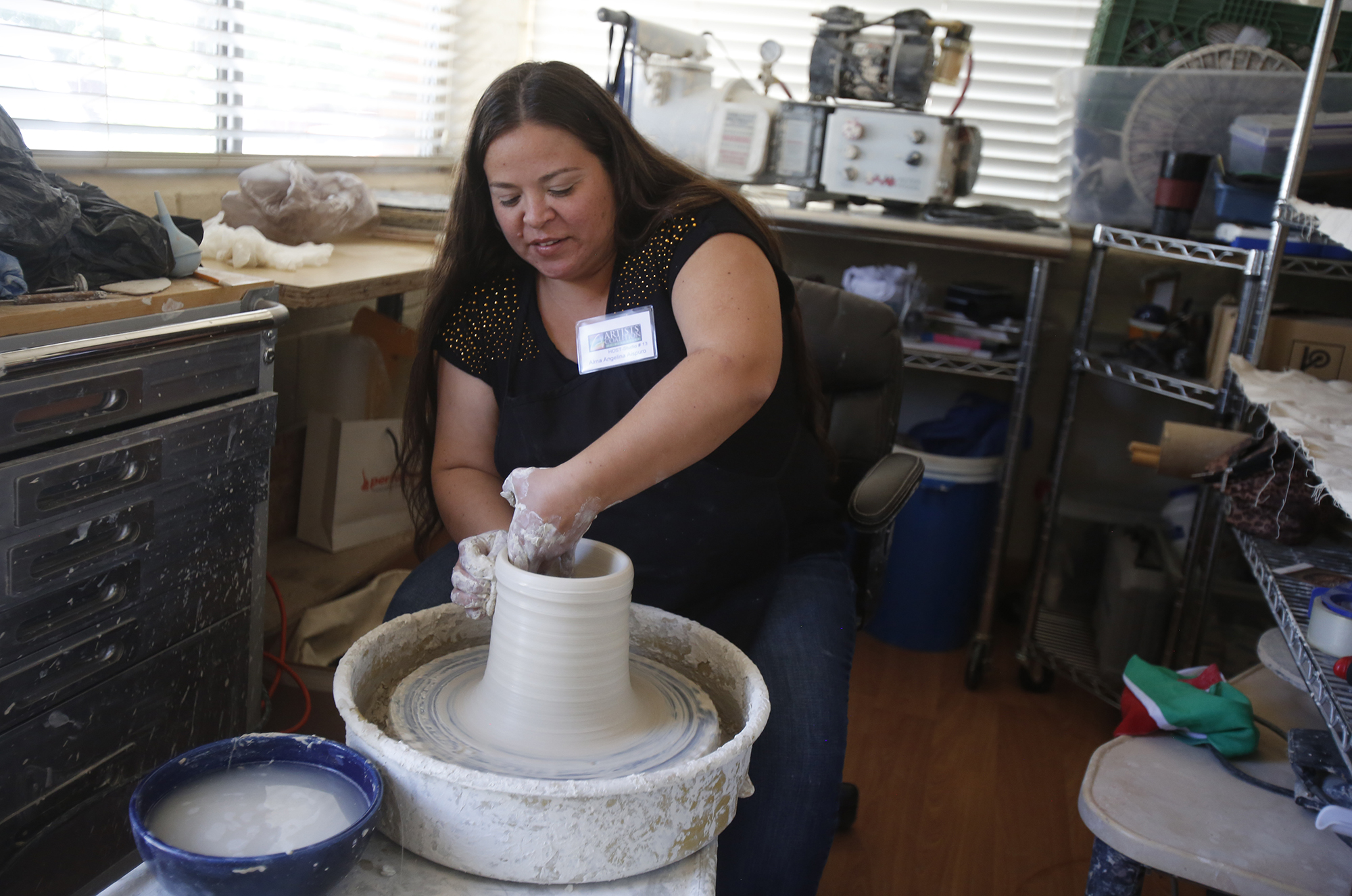 Alma Angelina Aispuro spins a pot on a pottery wheel in her home studio during the 18th annual Flagstaff Open Studios Saturday afternoon. During the two day event, which continues Sunday, many area artists open their studios and homes to the public offering demonstrations and selling their art.