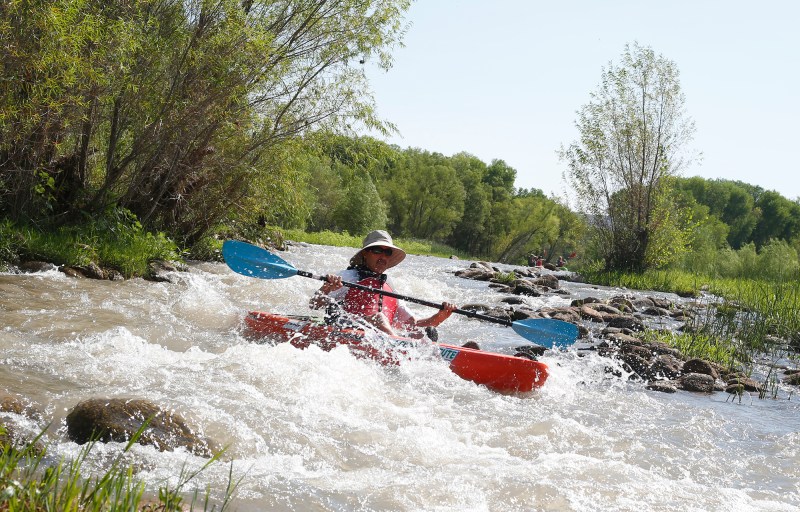 Stephan Block, a resident of Cottonwood, paddles down the Verde River during a kayak trip in August. Doug Von Gausig, the mayor of Clarkdale and director of the Verde River Institute, leads the trips to promote awareness of the river and its potential to be a bigger economic driver in the Verde Valley.