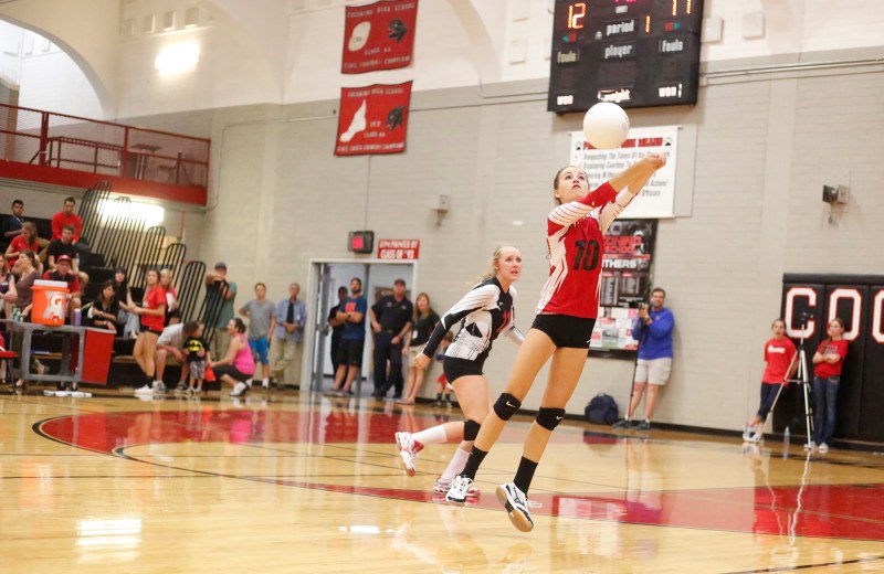 Coconino High School’s Lauren Touchstone (10) hits the ball during Thursday night’s game against Prescott High.