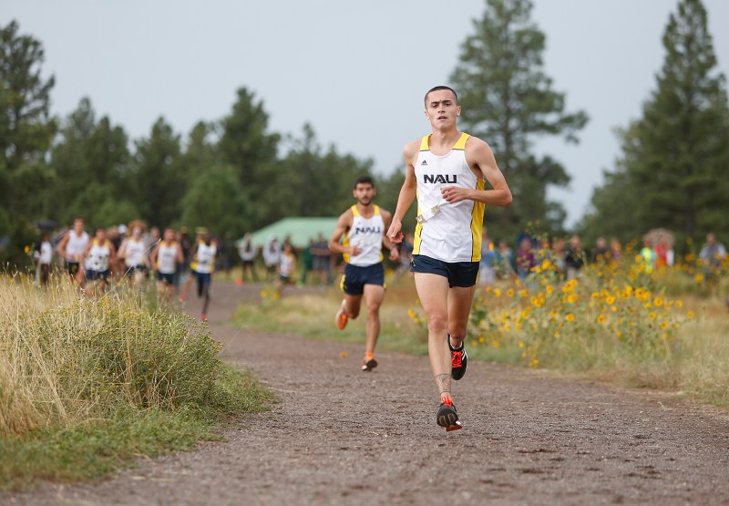 Northern Arizona University’s Cory Glines leads the pack of runners during the George Kyte Classic cross country meet at Buffalo Park Saturday.