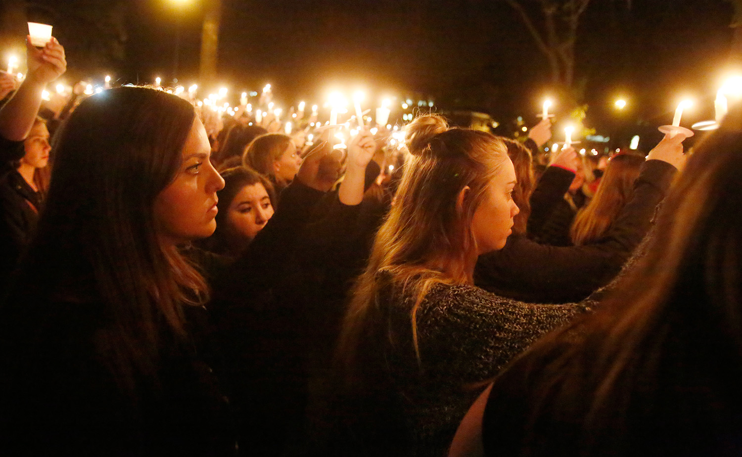 Mourners gathered at the Northern Arizona University campus for a candlelight vigil Friday night following a shooting that left one student dead and three others hospitalized earlier that day.