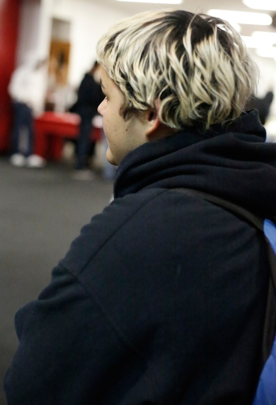 James Vance, 17, a senior at Coconino High School stands outside the school auditorium ahead of the annual Mr. Coconino Pageant Thursday. Vance, who preferred not to have his face photographed, said the pageant was offensive to transgender people.