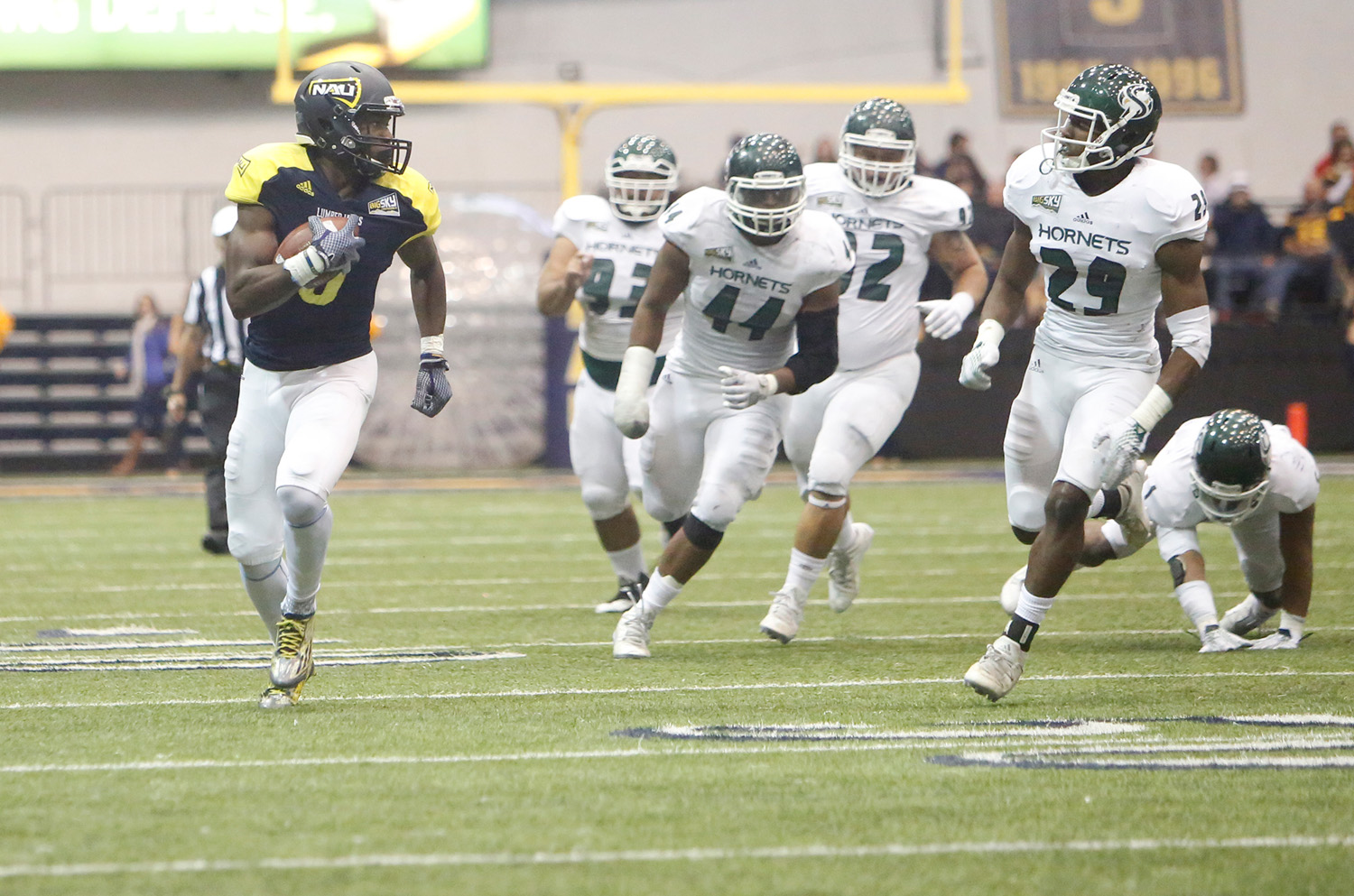 Northern Arizona University wide receiver Emmanuel butler (8) carries the ball downfield during Saturday’s game against Sacramento State.