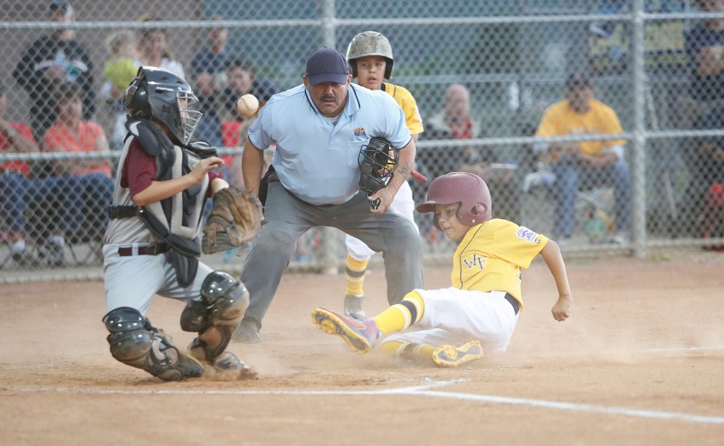 West Flag Little Leagues Nick Lopez slides into home during game action against Winslow Friday.
