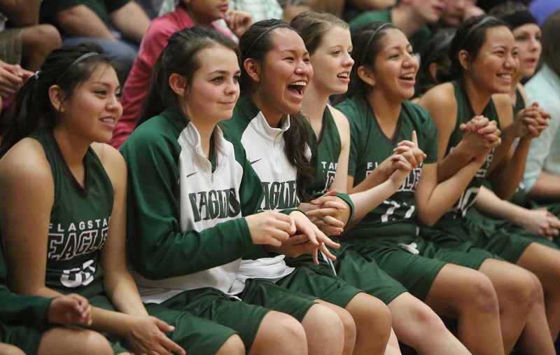 The Flagstaff High School team cheers from the bench after winning against Coconino Friday night.