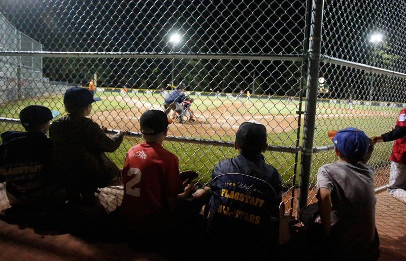 Young fans line the fence at Mark Grace Field Friday night to watch the championship matchup against the WFLL Giants and Red Sox.