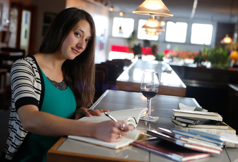 Poet’s Pen organizer Molly Wood sits at the Wine Loft in downtown Flagstaff, which hosts her popular weekly event.